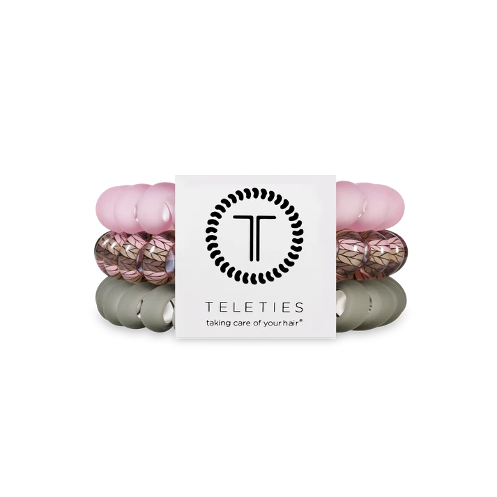 Sage it Ain't So Large Hair Ties in Pink and Sage offer a strong grip without damage, doubling as a chic wrist accessory when not in use. Your new favorite hair essentials all year round.