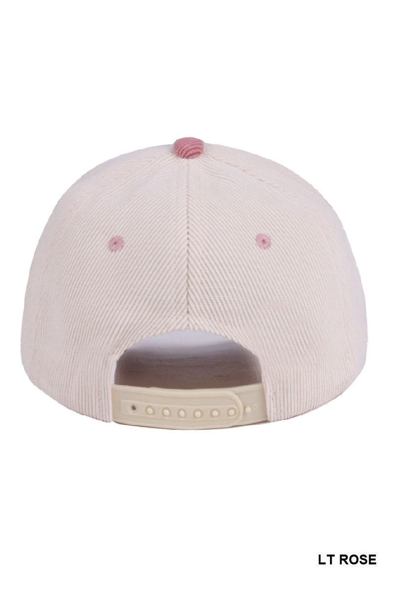 Two Tone Corduroy Cap in Light Rose